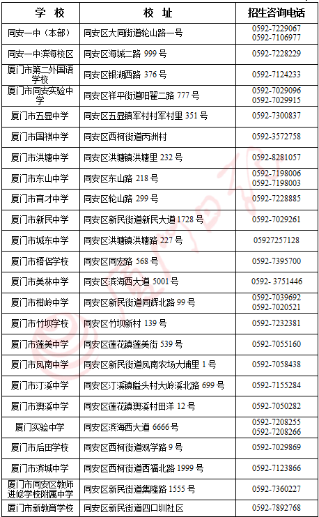 (3)厦门大学附属科技中学思明校区面向集美、海沧、同安和翔安区招收小学毕业生50人。(详见学校招生简章)