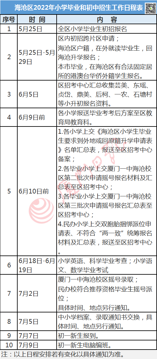 } ✔ 海沧区小升初报名时间为5月25日至5月29日。