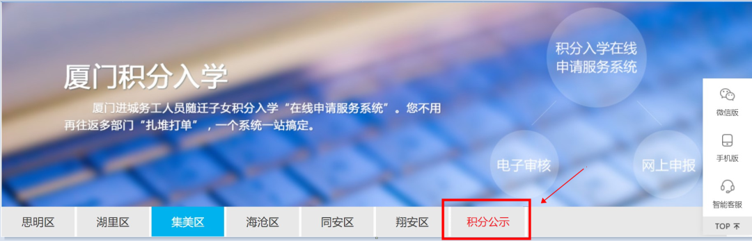 提醒 积分公示只在“i厦门”网上公布。虽然“i厦门”微信公众号也提供积分公示的入口,但点击进入会跳转到“i厦门”网站。因此建议大家直接在电脑上查阅。